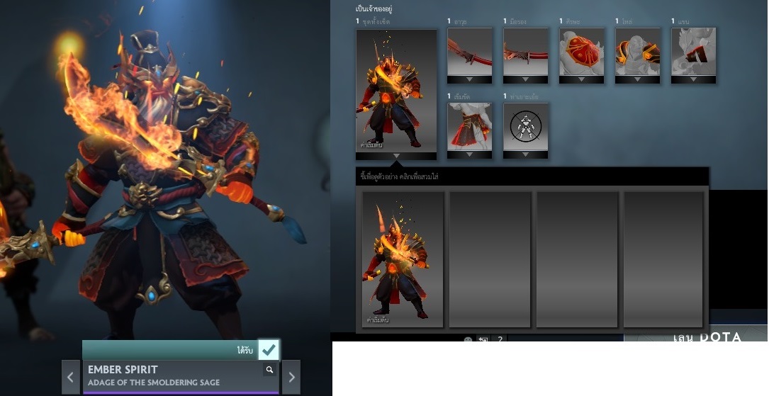 Dota2 ใน event Darkmoon ผมหมุนได้ชุดมา แต่ทำไม่มันไม่ใส่ให้ครับ มีรูป
