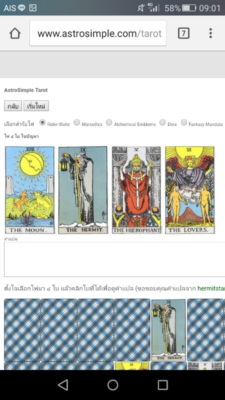 ลองเปิดไพ่เอง แต่ก็ยังอ่านไพ่ไม่ออก รบกวนช่วยแปลไพ่ให้หน่อยค่ะ