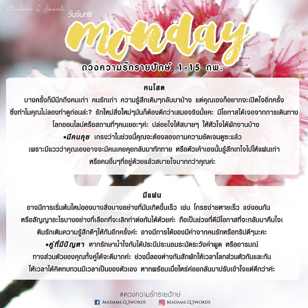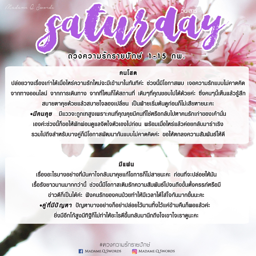 ดวงความรักรายปักษ์ 1-15 กุมภาพันธ์ by แพร madame q swords