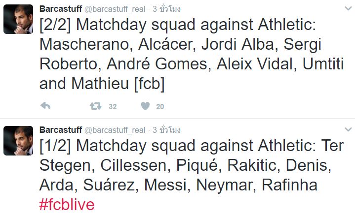 FC Barcelona กระทู้เชียร์สดลาลีก้านัดที่ 21 บาร์เซโลน่า vs บิลเบา 4/02/17