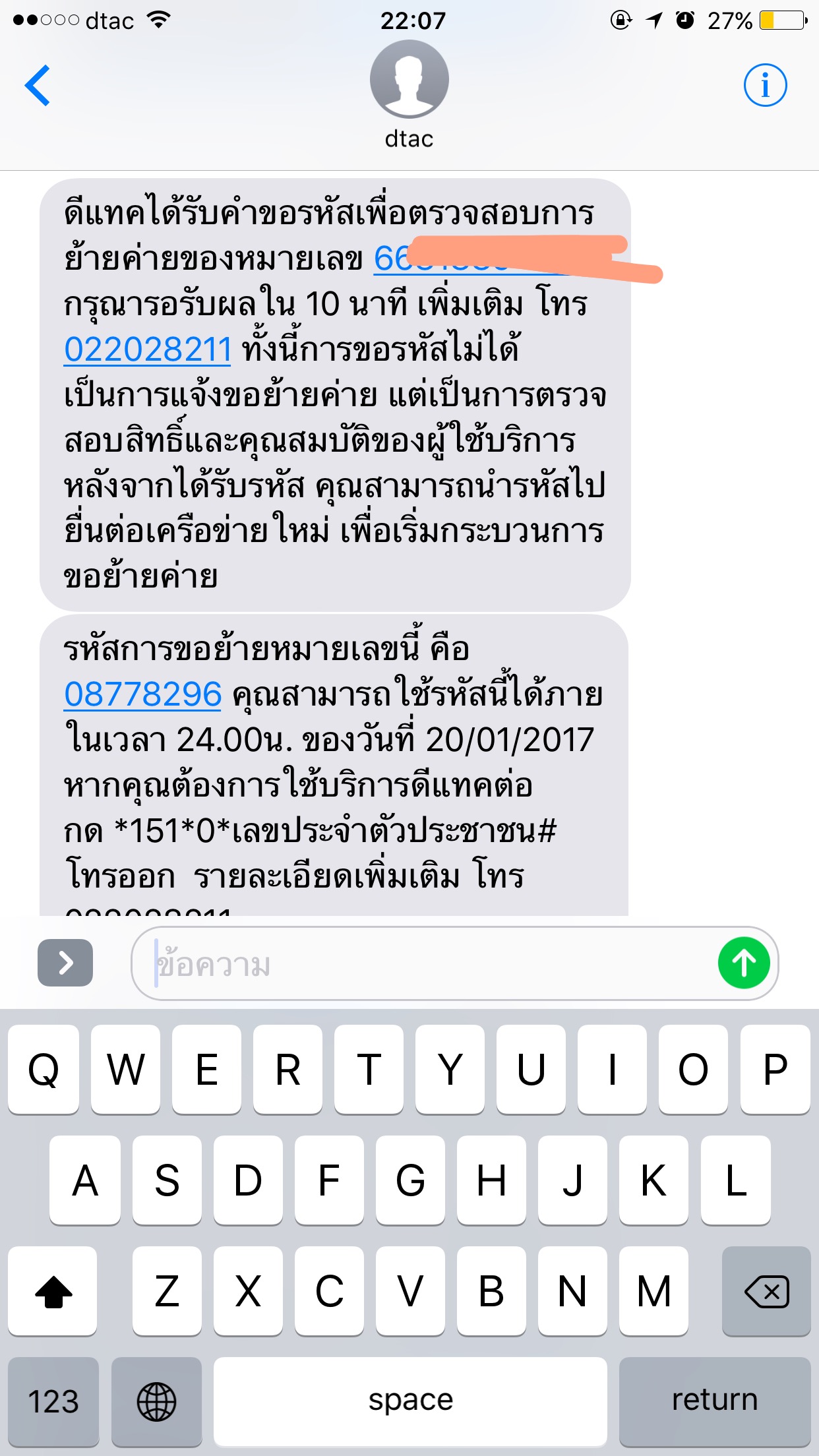 20/1/60 กดย้ายค่าย ได้รหัสเรียบร้อย แต่ไม่สะดวกไปย้ายเลยกดยกเลิก