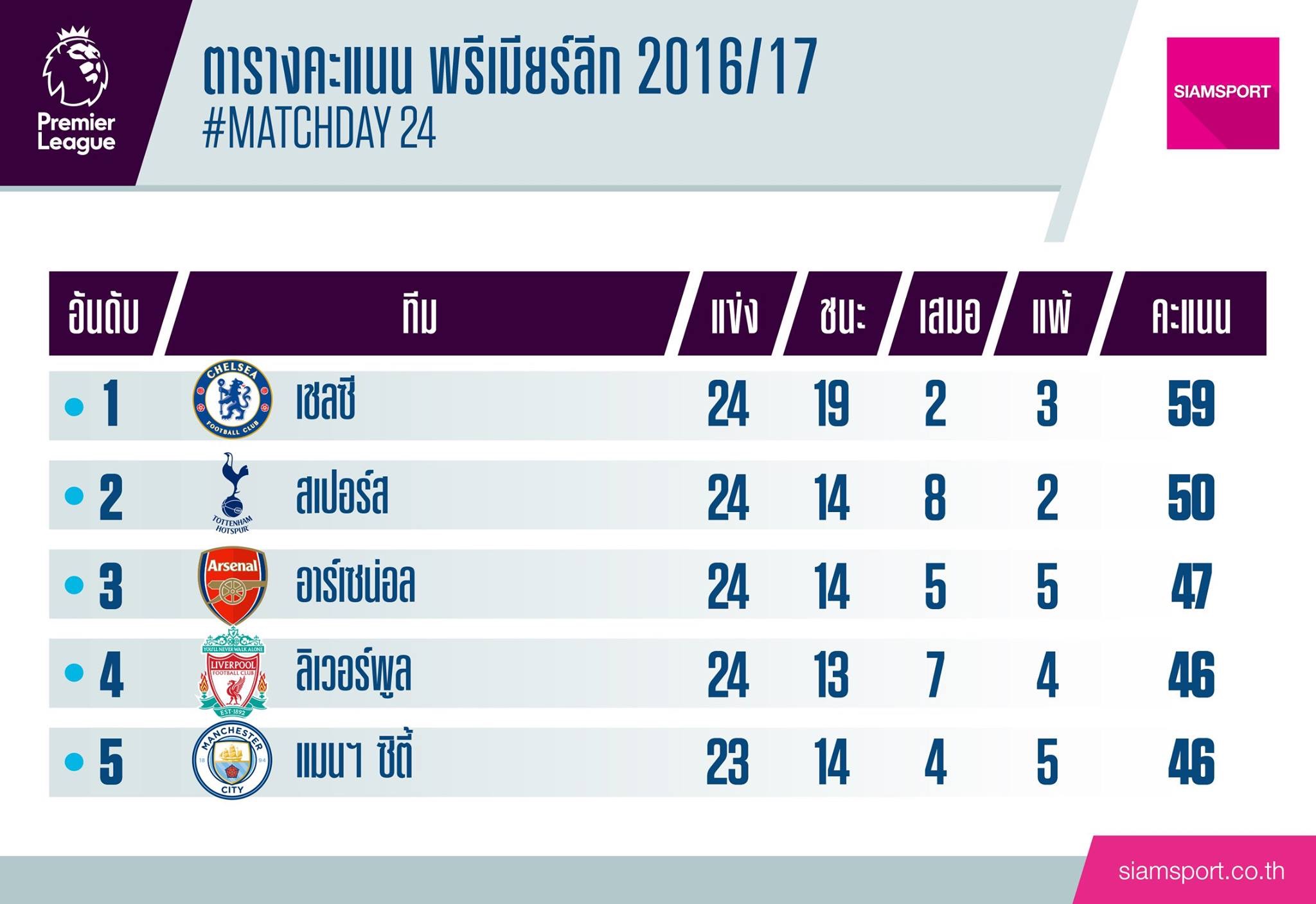 จ่าฝูงชนะรวด ผีเหนือหงส์ สรุปตารางคะแนน "พรีเมียร์ลีก"