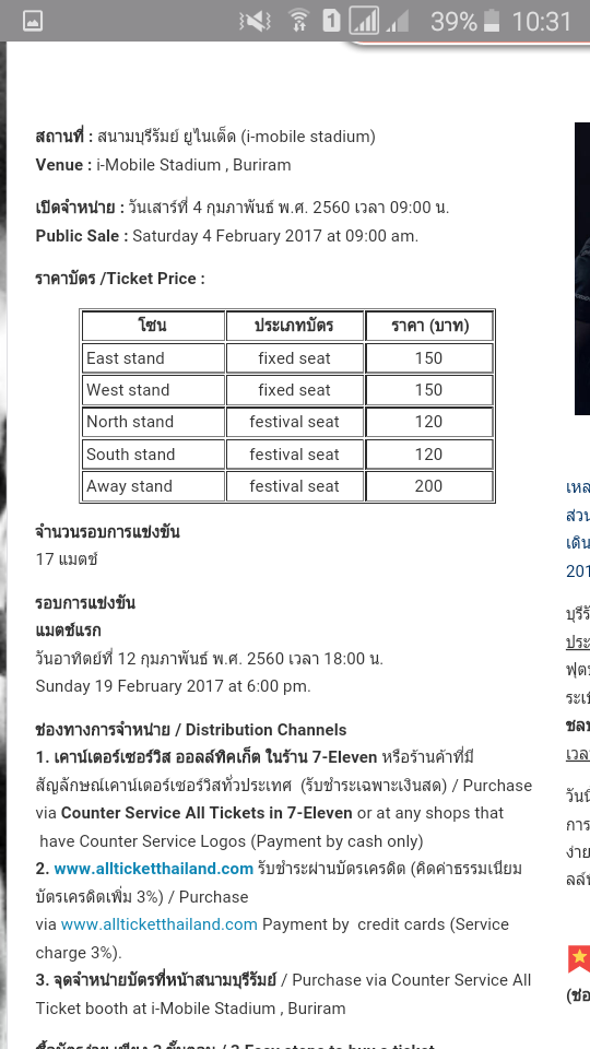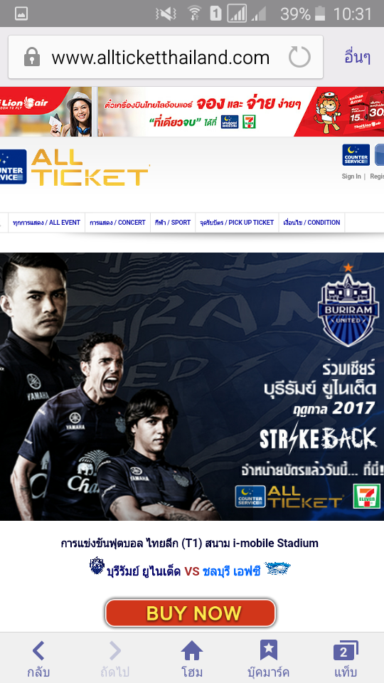 ตั๋วเข้าชมบุรีรัมย์ยูไนเต็ด สามารถซื้อได้ที่ allticket เซเว่นอีเลเว่น ทั่วประเทศและผ่านเว็บไซต์ตลอด24ชั่วโมง