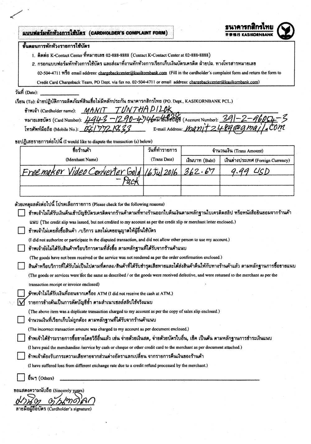 ซื้อของผ่าน PayPal แต่บัตรเครดิตโดนชาร์ทสองครั้ง แต่ใน Paypal ขึ้นครั้งเดียว ต้องทำยังไงบ้างครับ