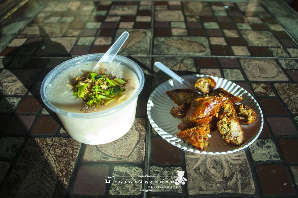 ผมแวะกินโจ๊คร้อนๆ และไส้อั่วครับ อร่อยดีครับ เอามือจับ ถ้วยโจ๊กไว้เลยครับ เพราะมันหนาวมากกก