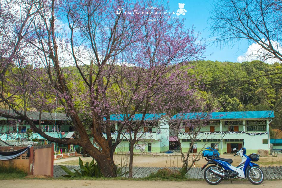 ขับมาจะผ่านสามแยก บ้านขุนวาง มีดอกพญาเสือโคร่งบานค่อนข้างเยอะ เลยแวะครับ