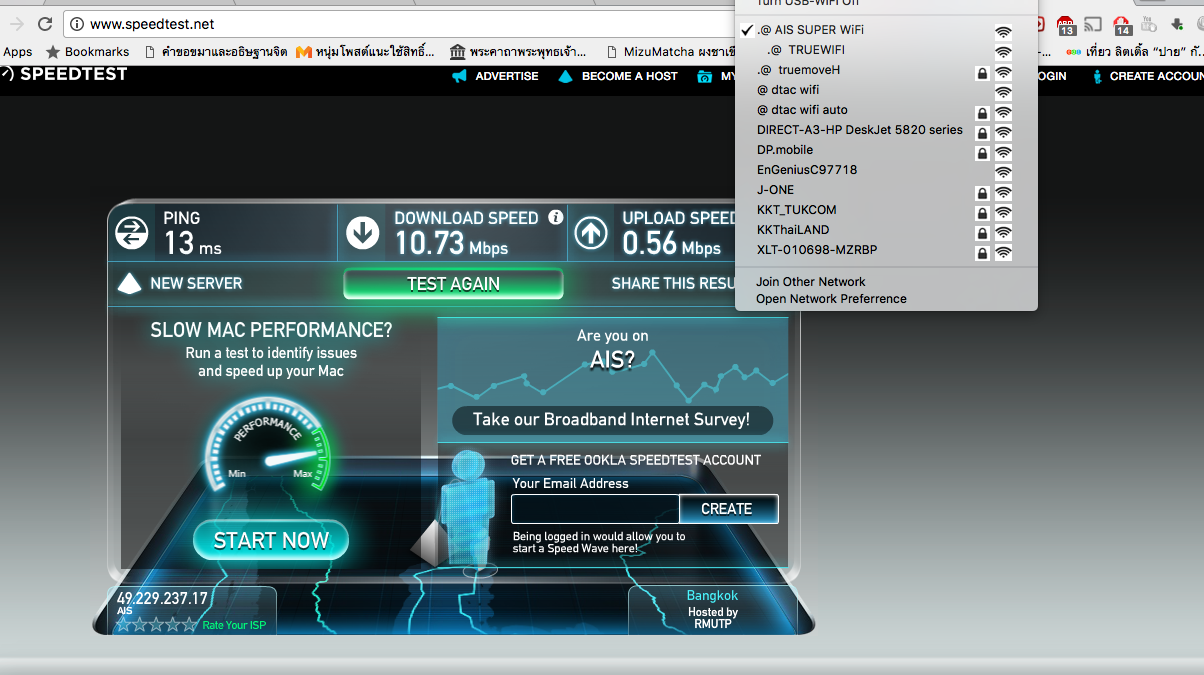 ที่บ้านใช้เน็ตทรูไฟเบอร์ที่ความเร็ว 50/20 ตัว router ที่ให้มาสามารถปล่อยได้ 2 ย่านความถึ่พร้อมกันทั้ง 2.4GHz และ 5GHz ซึ่ง smartphone และ surface pro สามารถมองเห็นและเชื่อมต่อได้ทั้ง 2 ย่านความถี่ แต