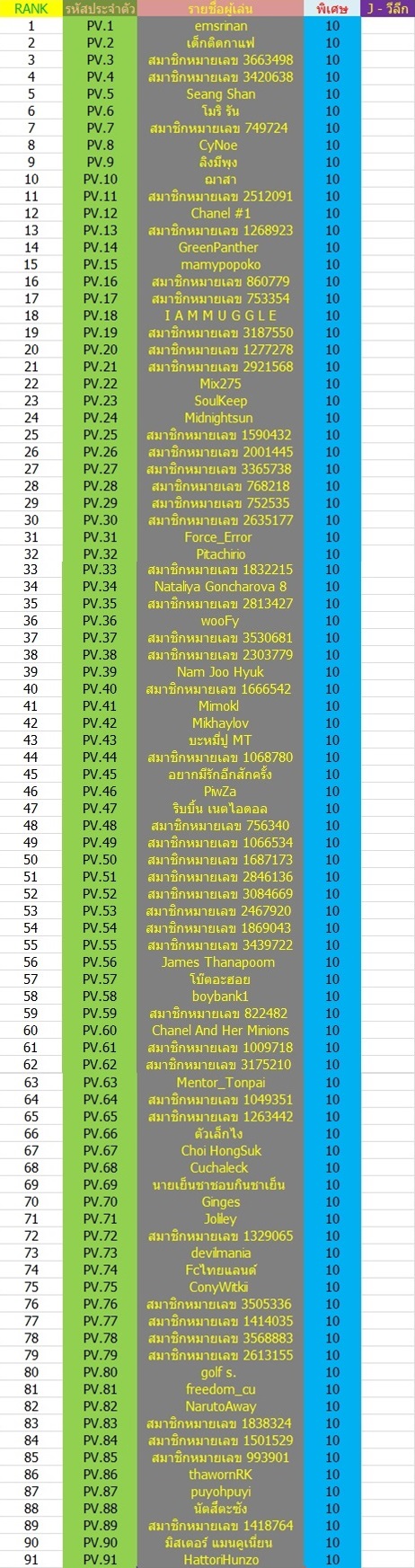 สรุปรายชื่อลงทะเบียนเล่นเกมส์สะสมคะแนน