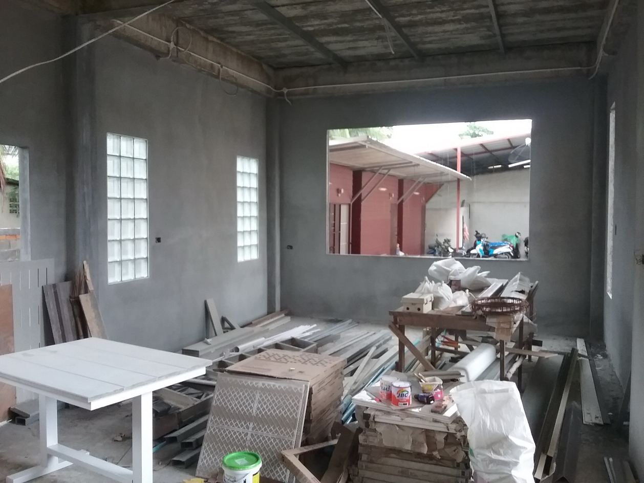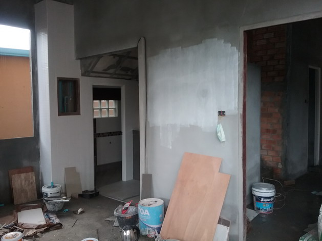 ตอนนี้ผมแค่หาเงินมาฉาบภายนอก ( ภายในฉาบเสร็จแล้ว ) ลงกระเบื้อง ( ลงแล้วบางส่วน) ฝ้าเพดาน ประตูหน้าต่าง