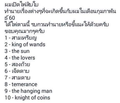 รบกวนอ่านไพ่ที่เปิดสิบใบประจำเดือนก.พ.นี้ว่า