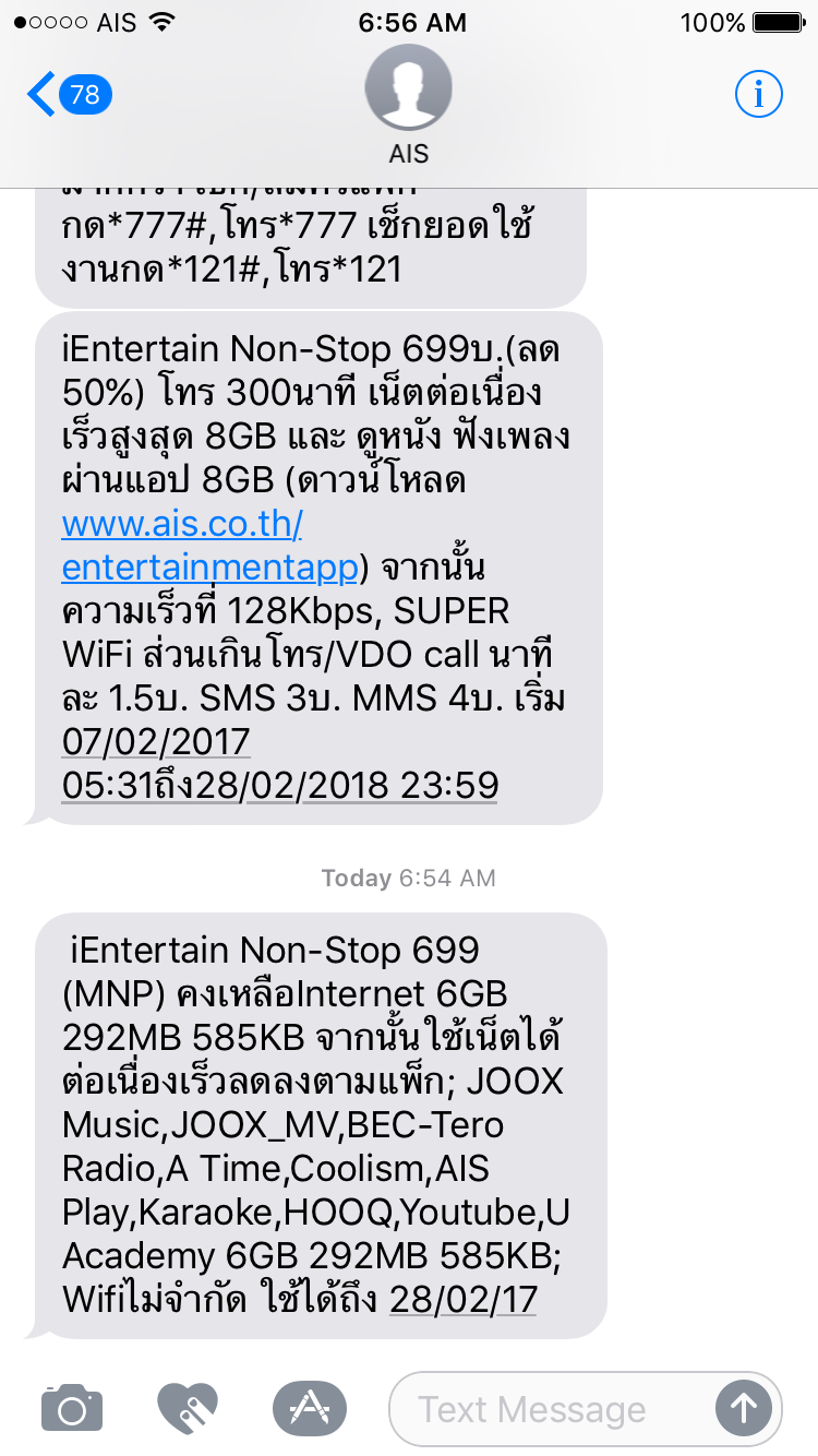 พอดีผมพึ่งย้ายค่ายมา AIS และได้เลือกสมัครโปร iEntertain Non-Stop 699 (ลด 50%) ซึ่งในเว็บแจ้งไว้ว่า ได้ 4G รวม 16 GB โดยแบ่งเป็น 1. ตามการใช้งานทั่วไป 8GB และ 2. สำหรับแอพลิเคชั่นที่กำหนด 8GB ผมอยาก