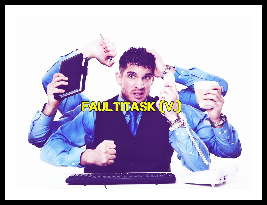 Example: "Pierre's disastrous trip to the deck with a six-pack, two pizzas, the IPad and their toddler was one of his wife's favorite tales of his faultitaskings."