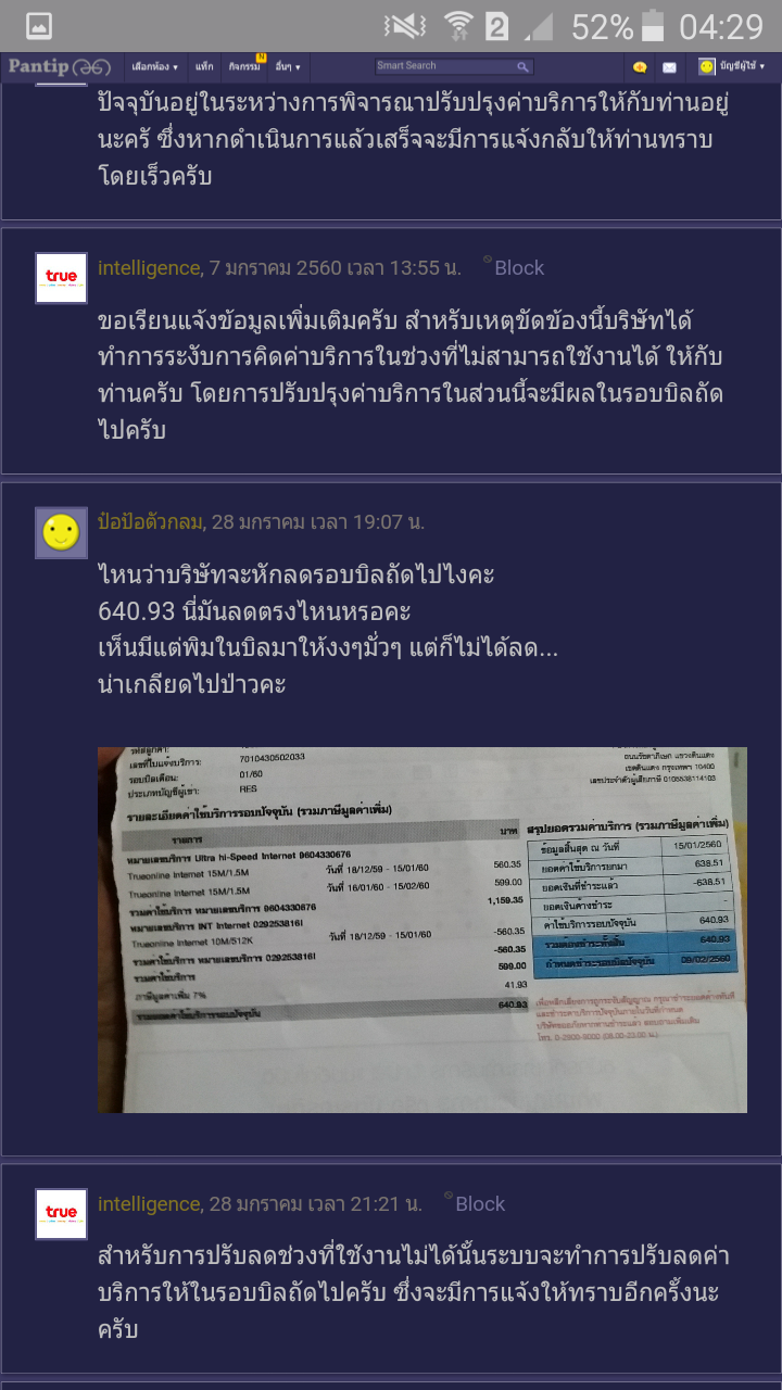 ทรูไม่หักลดเงินในวันที่ใช้ไม่ได้จากการตัดเน็ต Error001 สักที แถมโทรศัพท์บ้านก็ใช้ไม่ได้