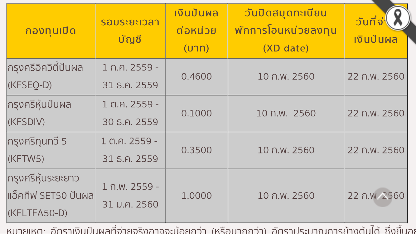 เดือนนี้ กองทุน kfsdiv จะมีปันผลไหมครับ