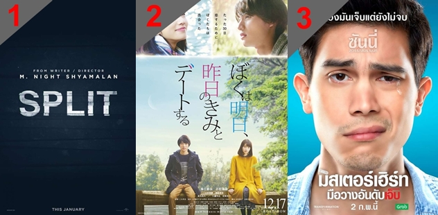 อันดับ 1 : Split ภาพยนตร์สะเทือนขวัญของชายที่มี 23 บุคลิกในร่างเดียว และได้จับตัวกลุ่มเด็กสาวมาเพื่อเหตุผลบางอย่าง เรื่องราวของหนังนำเสนอให้เห็นอาการของผู้ป่วยทางจิตผ่านตัวละคร ซึ่งก็ไม่ได้มีความซับซ้อนอะไรมากนัก แต่หนังก็มีการหักมุมในตอนจบให้คนดูได้รู้สึกแปลกใจกัน