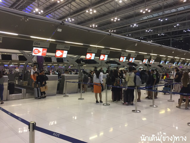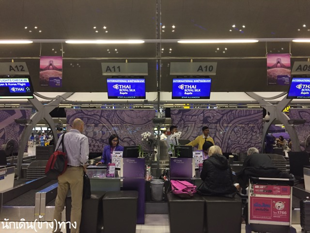 1.ขึ้นสายการบินอะไร แล้วดูว่าต้องไปเช็คอินCounter ไหน แล้วไปเช็คอิน โหลดกระเป๋า เช่น นั่งการบินไทย(ชั้นธุรกิจ+ชั้นหนึ่ง) จะไปเค้าเตอร์ A