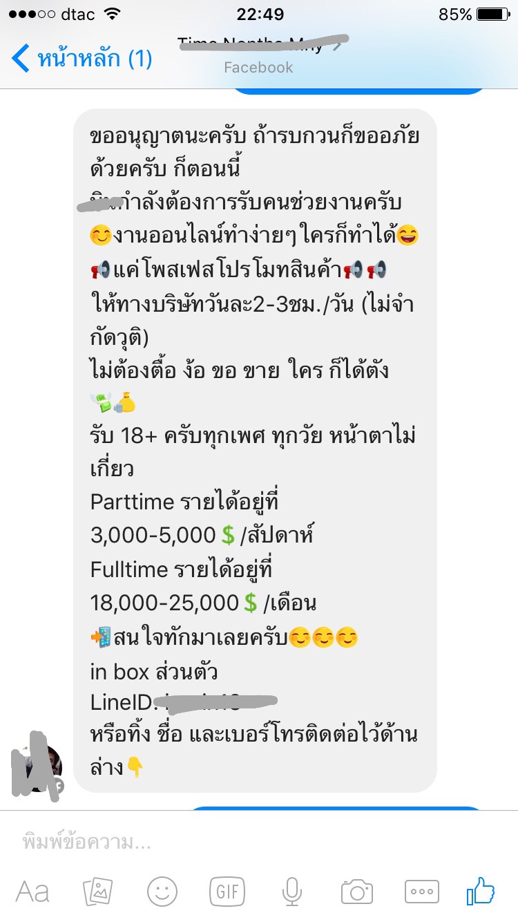 ฝากถึงพวกที่ชวนคนทำงานผ่านเน็ตนะคะ ต่ำตั้งแต่คนที่มาชวนเลย
