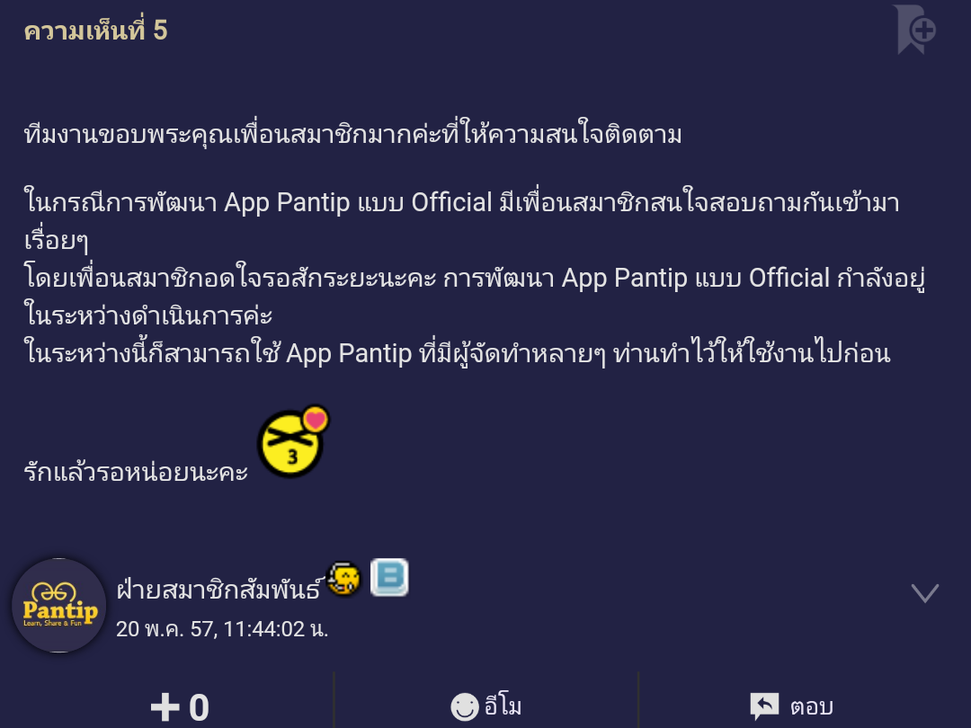 มีใครรอ แอป Pantip Official จากทีมงานพันทิปบ้าง คาดว่าน่าจะออกมาดีแน่นอน