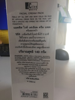 3.Active white Facial Cream Pack จาก MTI ครีมลอกหน้าเพื่อดึงสิ่งสกปรกหรือเซลล์ที่อุกตันตามรูขุมขนออก ยังไม่ได้ใช้ ส่งต่อ 200 ฟรี EMS