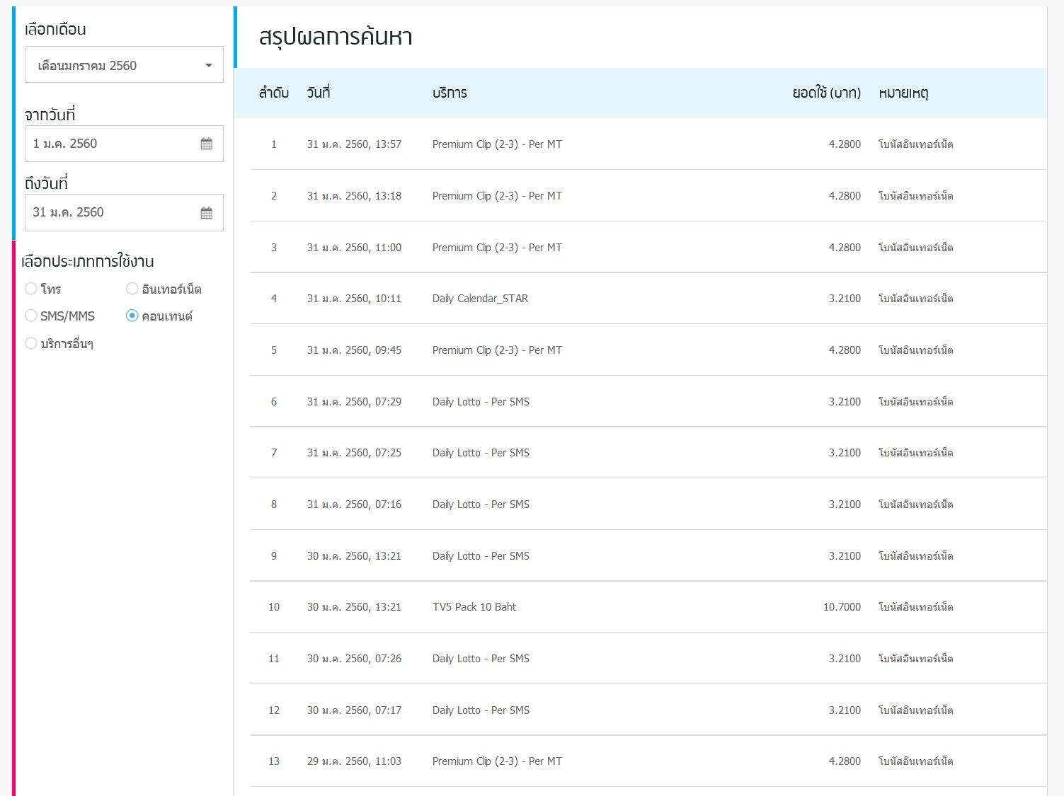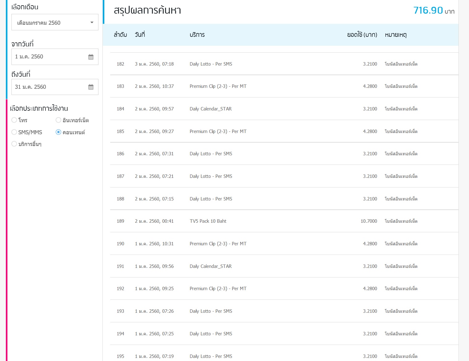 เปิดดูประวัติใช้งานดูแล้วแทบช็อค ปรากฏว่ามีค่าคอนเทนต์จาก SMS กินเงินไปฟรีๆ