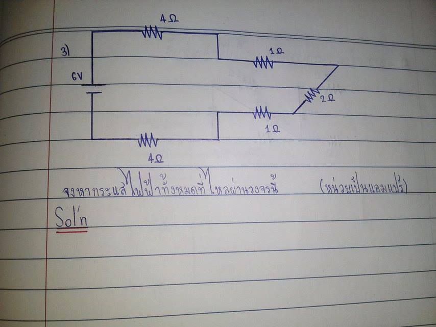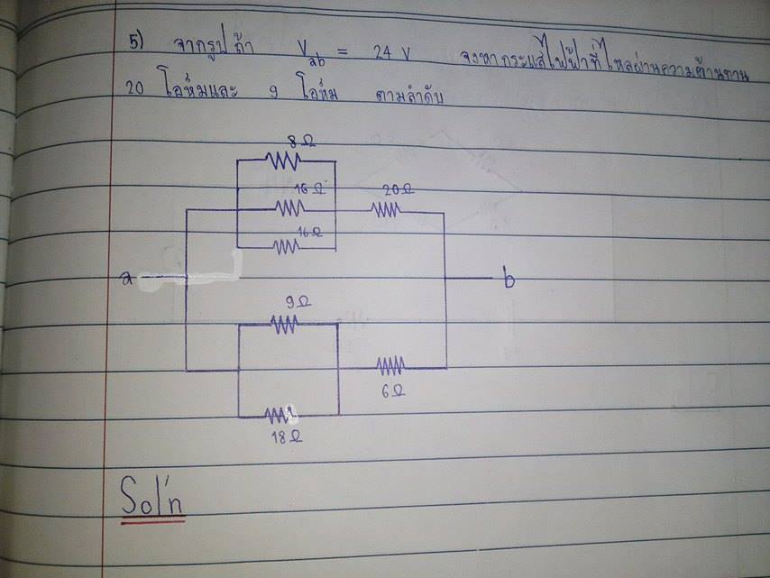 ข้อ 6 หาตัวต้านทานที่ขนานกันก่อน แล้วจับอนุกรมบวกตัวที่เหลือ เอา R ไปหาจากสมการ V=IR