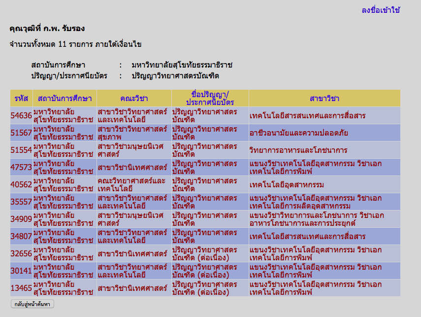 ถ้าดูจากรูปที่สอง สังเกตุว่ายังไม่มีวิชาเอกที่เป็น วิทยาการคอมพิวเตอร์  หรือว่า กพ ยังไม่ update