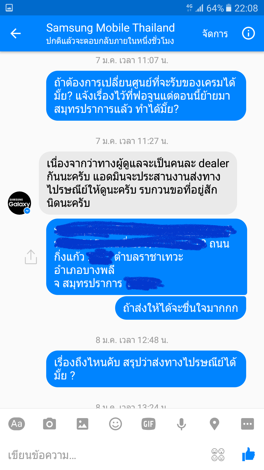 6. ผมไม่ได้ร้องขอให้ส่ง ผมขอคำแนะนำว่าส่งไปรษณีย์ได้มั้ย ได้/ไม่ได้ก็บอก ไม่ใช่อีกคนพูดอย่างนึง อีกที่ก็พูดอย่างนึง ผิดหวัง เสียเวลา
