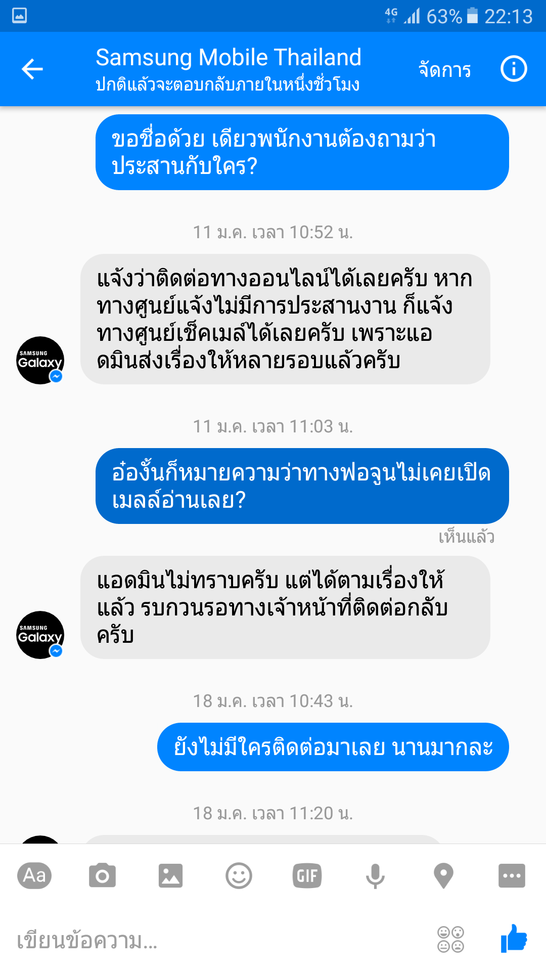 3.พนักงานขาดความรับผิดชอบโยนความผิดให้ลูกค้าได้ไงว่าโทรตามแล้วไม่รับสายเองรึป่าว ในเมื่อผมถือโทสับในมือทั้งวันทุกวันเปิดเสียงด้วย นอนรออยู่บ้านด้วยตั้งแต่วันที่5มกรา60