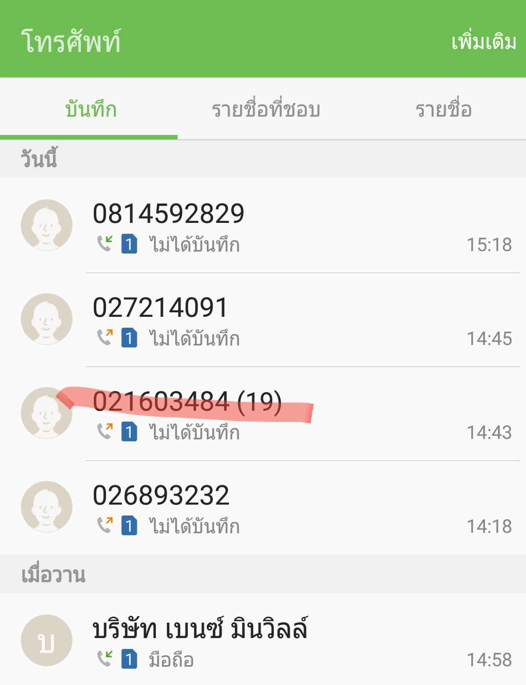 15.18 น. ของวันเดียวกัน (เบอร์มือถือโทเข้ามา)