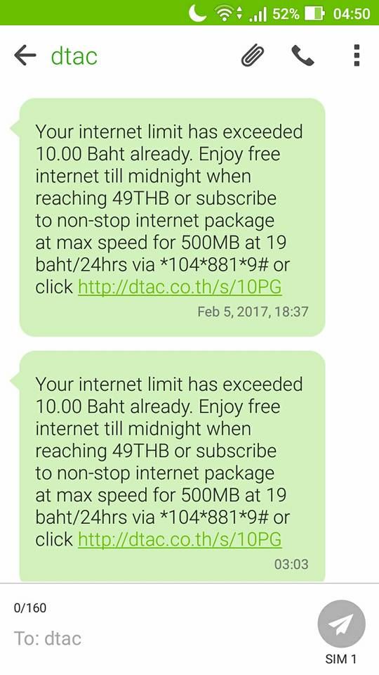 ผมได้รับ sms แจ้งเตือนว่าใช้อินเตอร์เน็ต และหักเงินผมไป ทั้งที่ผมไม่ได้ใช้อะไรเลย