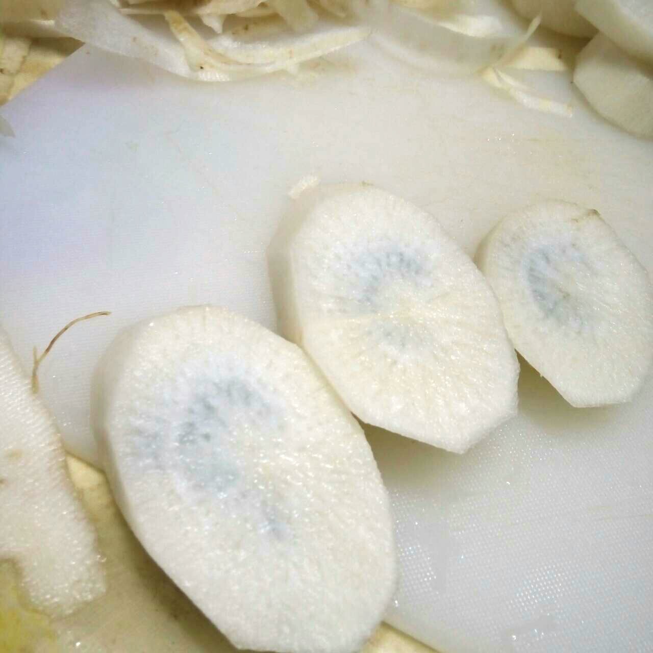 หั่นไชเท้าแล้วมีสีดำในเนื้อตรงแกน มันคืออะไรเหรอคะ (มีรุป)