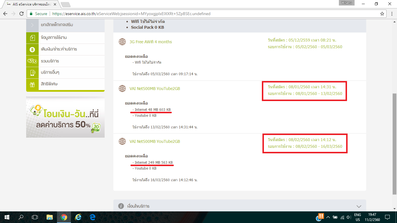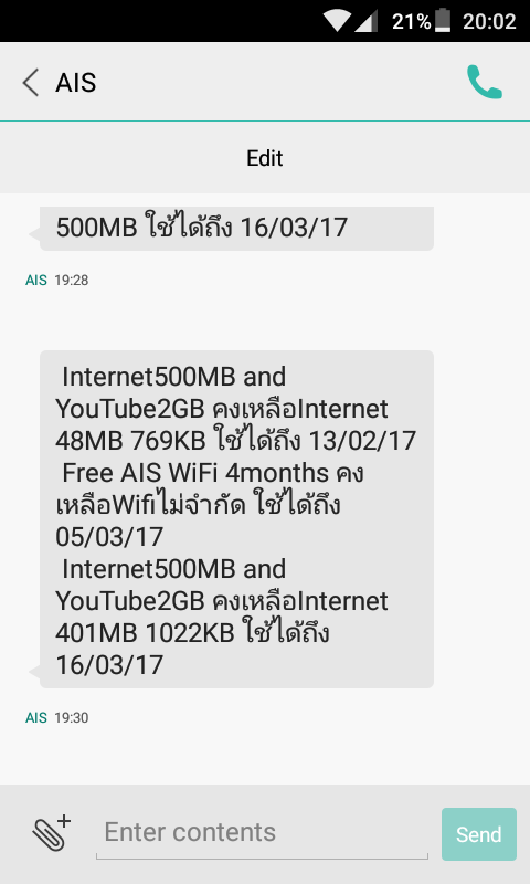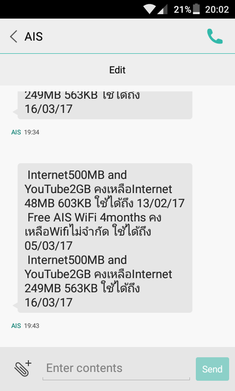 แพคเกจ ZeedSIM จะให้วันใช้งานมากกว่าปกติ คือให้วันใช้งาน 35วัน เพื่อให้แพคเกจช่วงวันท้ายๆไปทับซ้อนกับแพคเกจในรอบถัดไปอยู่ 5วัน ซึ่งถือว่าออกแบบมาได้ดี และวันนี้หมายเลขหนึ่งของผมมี แพคเกจสองชุดคือ Net ~400MBและYoutube ~1.9GB กับ Net 500MBและYoutube 2GB