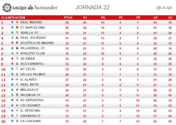 *** สถานการณ์ในลีกตอนนี้ ทีมเรายังนำบาร์ซ่าอยู่ 1 แต้ม และแข่งน้อยกว่าอยู่ 2แมตซ์ ถ้าเราเก็บ6 คะแนนที่เหลือได้หมดก็จะนำถึง 7คะแนน ถือว่ากุมความได้เปรียบเอาไว้ก่อน ซึ่งเราจะแข่งนัดตกค้างกับบาร์เลนเซียในวันเสาร์ที่ 22นี้ค่ะ