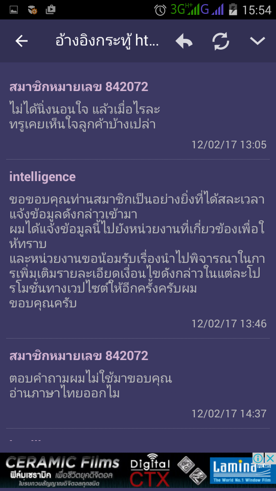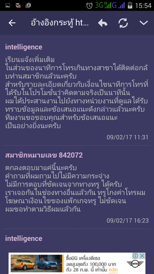 ตอบ จะประสานงานให้ ส่งเรื่องหน่วยงานที่เกียวข้อง ทรูไม่ได้นิ่งนอนใจครับ ขอบคุณที่แนะนำ(กูไปแนะนำตอนไหน กูเรียกร้องที่โกงกู) และอีกอย่างอ่านเงื่อนไขของแต่ละแพ๊กเกจดีๆนะครับ