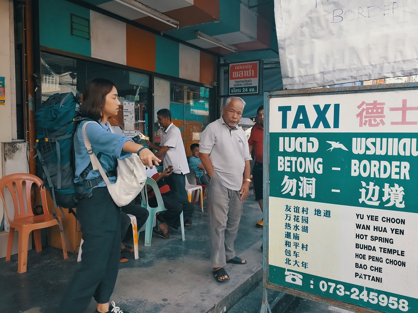 เริ่มต้นเราออกเดินทางกันจากเบตง ซึ่งการเดินทางทั้งหมด ส้มกับมิ้น สองสาวที่ผมเจอที่เบตง เธอมีข้อมูลพร้อมอยู่แล้ว ผมก็มีหน้าที่ ตามเธอไปอย่างเดียวเลย เธอไปไหน ผมไปด้วย ช่วย 20 บาท เริ่มแรกเราต้องนั่งแท๊กซี่ จากเบตงไปยังด่าน มาเลเซีย ซึ่งค่ารถโดยสาร อยู่ที่ 300 บาทไทยครับ
