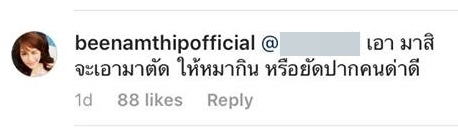 อย่างไรก็ตาม เหมือนว่า คนดูจะอินมากจนเริ่มเลยเถิด เมื่อผู้ใช้งานอินสตาแกรมรายหนึ่ง ไปโพสต์ให้อวัยวะเพศในอินสตาแกรมของบี ทำให้บี น้ำทิพย์ ทนไม่ไหว ต้องออกมาตอบโต้ โดยบี แท็กหาเจ้าของอินสตาแกรมดังกล่าว และตอบกลับว่า “เอามาสิ จะเอามาตัดให้หมากิน หรือยัดปากคนด่าดี” เรียกว่าแซ่บทั้งในจอและนอกจอจริงๆ