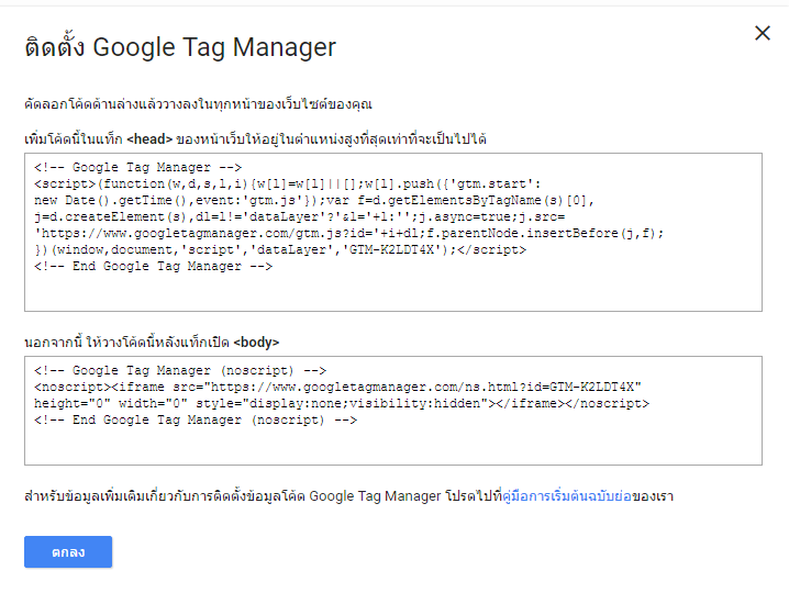 เว็บใช้ Wordpress ครับ แต่ว่าใส่ Tag ด้วย Google Tag manager แต่ทำตามมันก็ยังไม่ได้ แนะนำหน่อยครับ