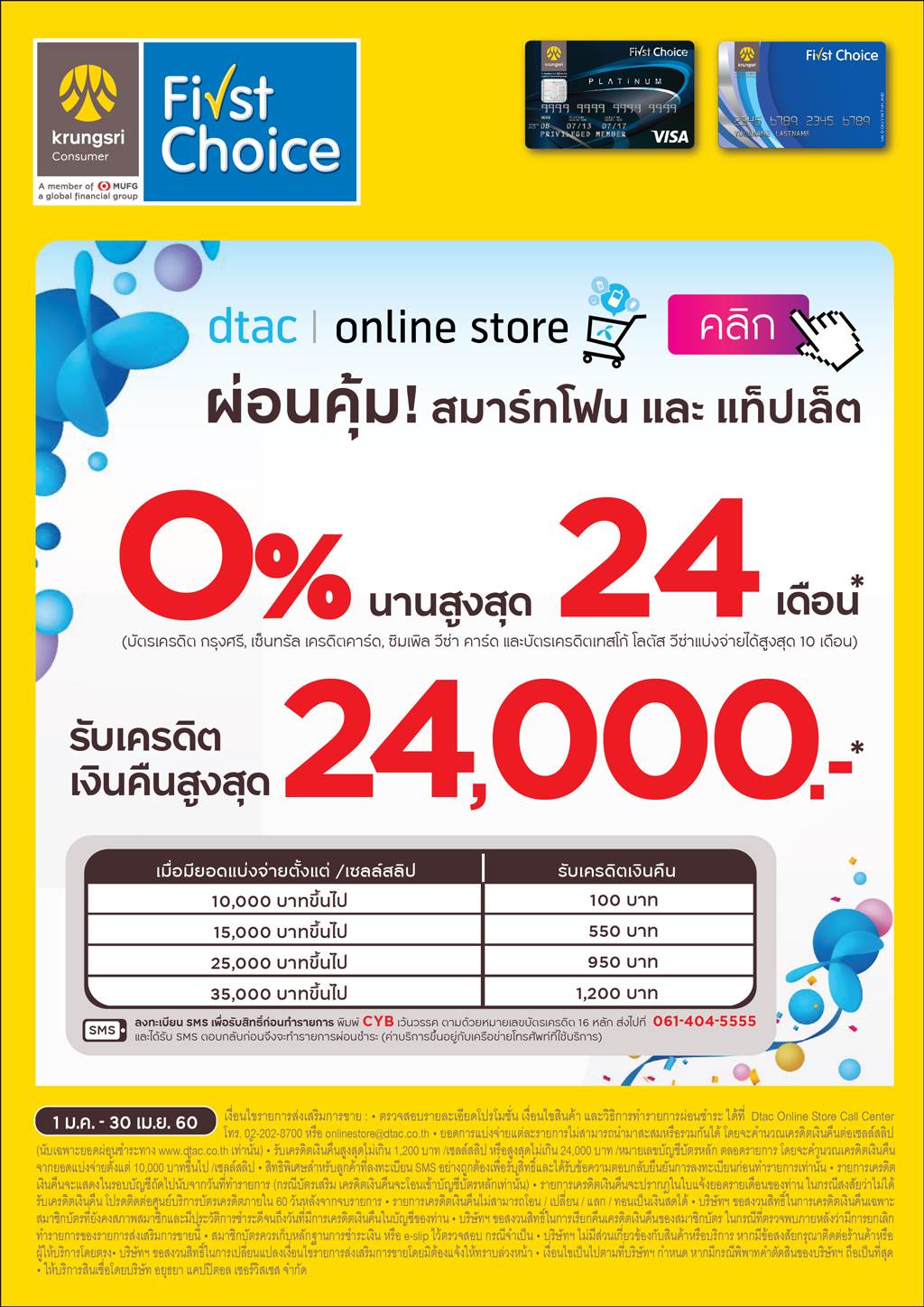 1. ผมเลือกชำระผ่านบัตรกรุงศรีเฟิร์สช้อยส์ โดยการผ่อนชำระ 0% นาน 24 เดือนครับ สามารถเข้าร่วมโครงการได้ไหมครับ ?