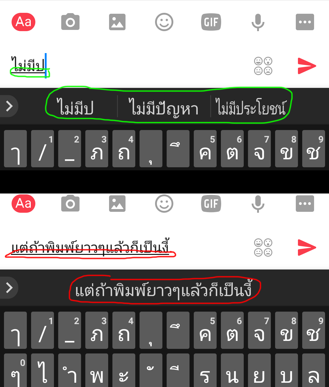 แต่ถ้าเริ่มพิมพ์ยาวเป็นประโยคเมื่อไหร่เหมือนระบบมันจะไม่แยกคำอะครับ
