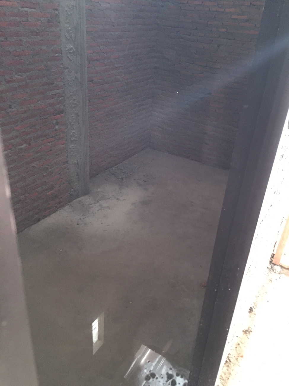 อันนี้รูปในห้องน้ำมีน้ำขังอยู่ไม่รู้จากที่ช่างรดผนังกำแพงเพื่อที่จะฉาบต่อหรือว่าใส่น้ำเพื่อทดสอบพื้นกันแน่