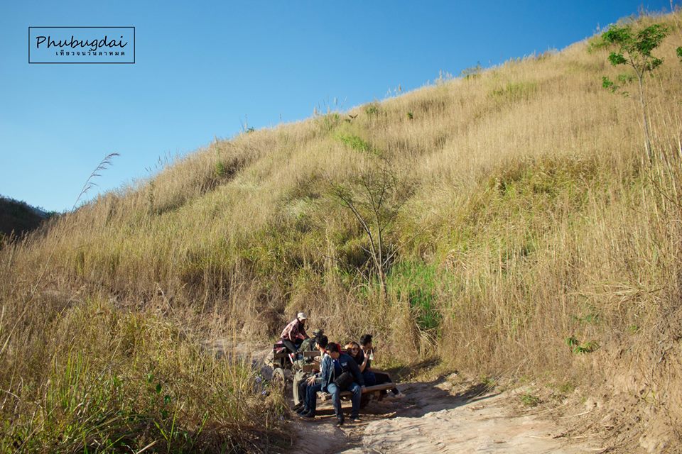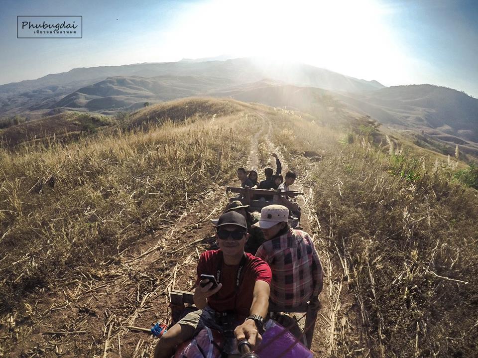 รถอิแต๊กจะขับผ่านหมู่บ้านมุ่งหน้าสู่ยอดเขาผ่านภูเล็กภูน้อยเยอะแยะไปหมด