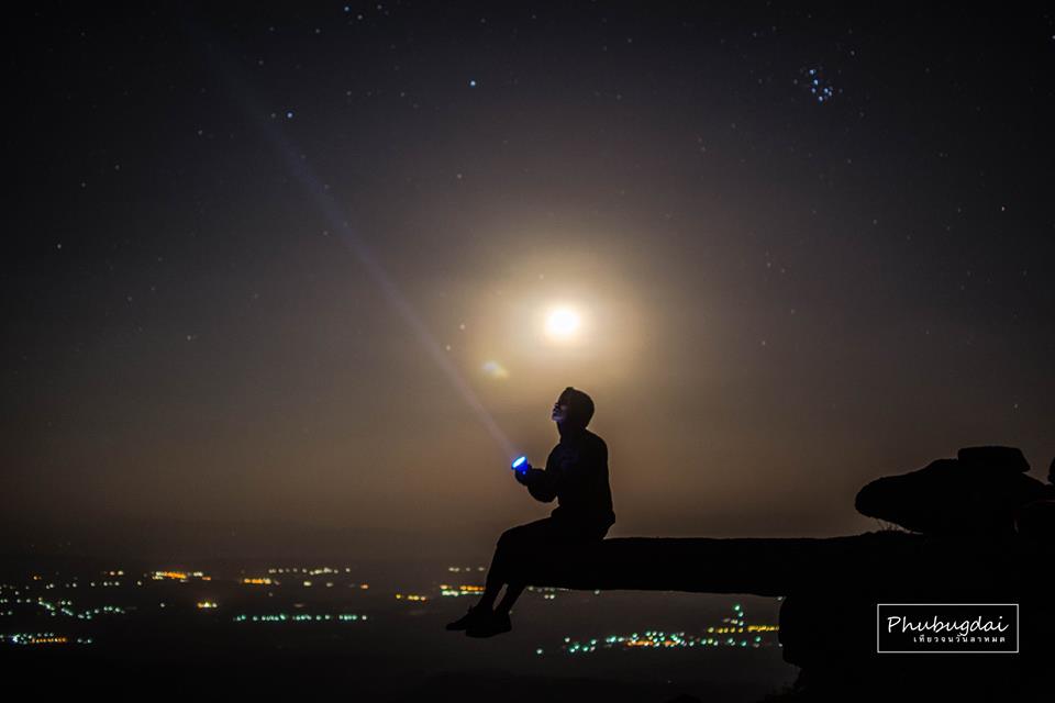 แสงเริ่มหมด ทางเดินเริ่มมืด พี่ตุ้มแจกไฟมาสามอันไว้ส่องทาง แหม๋ได้บรรยากาศอีกแบบ แต่ๆๆๆๆ ทุกคนต้องเดินอย่างระมัดระวังกันมากกว่าเดิมอีกสองเท่า เพราะทางเดินมืดและบางช่วงเดินริมผาด้วย ค่อยๆเดินครับค่อยๆเดิน เดินไปเปิดเพลงไป เหมือนเป็นการปลอบใจตัวเองทางอ้อมว่าไม่เหนื่อยเลย เดินไปฟังเพลงไป แต่ก็แทบปิดเสียงเพลงไม่ทัน โอ้โห ขี้ช้างครับ ณ ตอนนั้นปิดลำโพงแทบไม่ทันเลยจริงๆ ถึงแม้พี่ตุ้มจะพยายามปลอบพวกเราว่าไม่ใช่ขี้ช้างแต่เท่าที่ผมรู้มา นี่มันขี้ช้างชัดๆฮ่าๆ แกเลยทิ้งห่างพวกเราไปเพื่อดูทางให้ นั่นละครับความซวยมาเยือนทุกครั้ง เพราะฉะนั้นถ้าไม่จำเป็นอย่าขึ้นไปค่ำเลยครับ ผมว่ามันอันตรายอยู่นะ