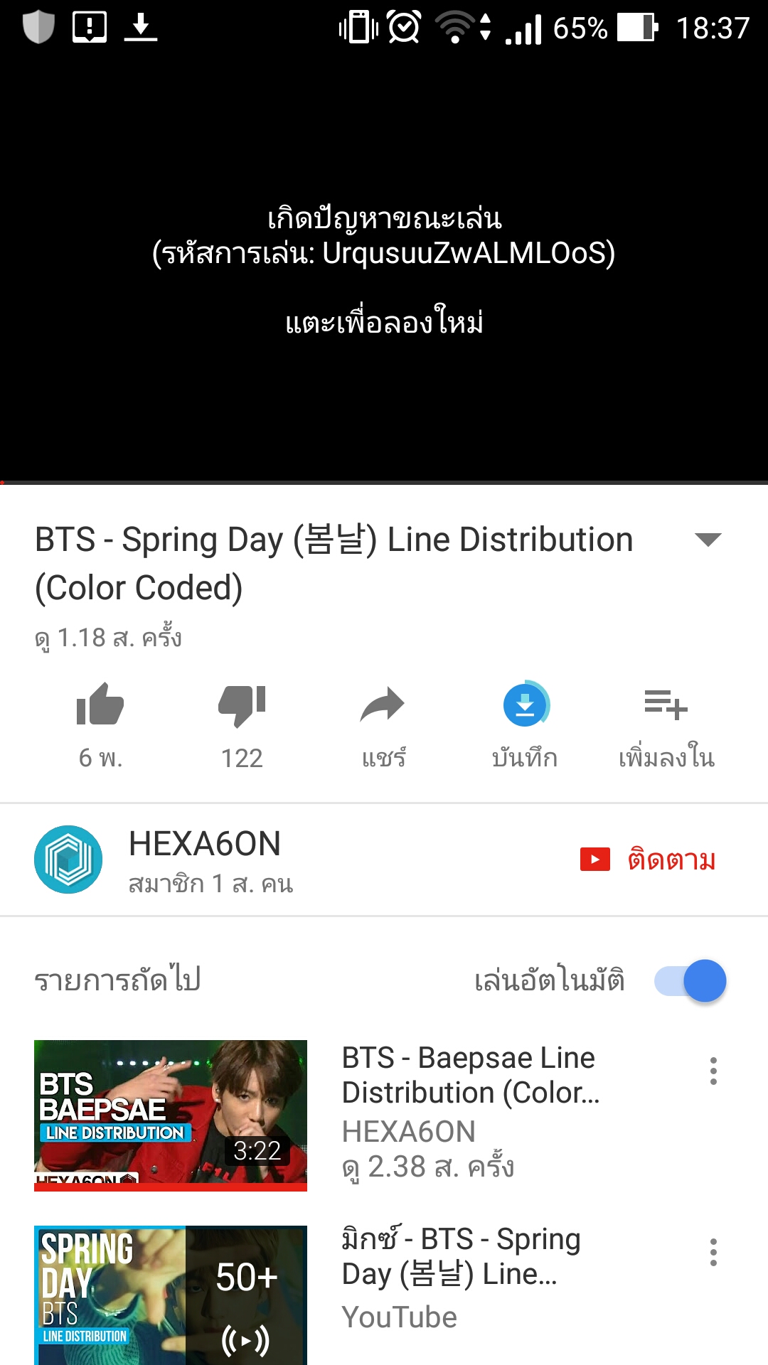 ดูยูปไม่ได้ " เกิดข้อผิดพลาด แตะเพื่อลองใหม่อีกครั้ง"