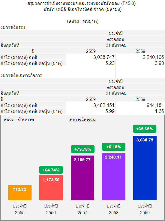 สรุปผลการดำเนินงาน รายปี 2559 KCE