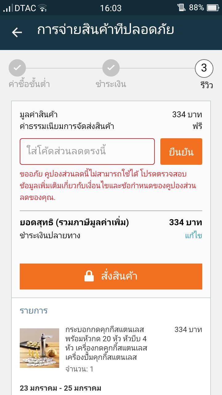 เพื่อนๆเห็นไหมค่ะ พลาสติดรูซ้ายมือเราหักไปข้างหนึ่ง เราที่ปี๊ดเลยค่ะ รีบโทรไปบริษัทเลยพนักงานรับโทรศัพท์ก็สอบถามว่า ชำรุดอย่างไงเราก็อธิบายๆไป พนักงานบอกว่า ทางเราไม่เห็นของเลยไม่แน่ใจชำรุดอย่างไง จะให้เราส่งของคืน ถามเพื่อนๆนะค่ะ เคยอ่านวิธีการคืนสินค้าของ lazada ไหม หลายขั้นตอนมาก เราเลยถามว่าพนักงานว่ามีวิธีไหนนอกจากส่งสินค้าคืนไหมเพราะรู้สึกเหมือนการส่งสินค้าคืนจะยุ่งยาก พนักงานเลยตอบมาว่า เราจะส่งเป็นคูปองส่วนลดให้ลูกค้าแทนทางอีเมล์ราคาเท่ากับจำนวนราคาของก็คือ 290 บาท พนักงานจะส่งภายใน 48 ชม.เราก็โอเคค่ะ บริษัทยังรับผิดชอบ เราก็ รอคูปองส่วนลดทางเมล์นะค่ะเพื่อที่จะเอาไปใช้ซื้อสินค้าอื่นก็ มีเมลืแจ้งเข้ามานะว่าได้รับเรื่องเรียบร้อยแล้ว เราของจนเกิน 48 ชม.(รอจนจะ72 ชม.) แล้วค่ะก็ไม่มีเมล์ใดๆ ส่งมาเลย เราเลย ส่งเมล์กลับไปถามทาง lazada พอแล้วส่งเมล์ถาม ทาง lazada ก็รีบส่งคูปองส่วนลดมาให้ทันที เราก็นึกโมโหนิดนะค่ะ แต่ก็ไม่เป็นไร เราก้เอาคูปองนี้ไปใช้ในเว็บ lazada สิ่งที่เกิดคือไรเพื่อนๆรู้ไหมค่ะ ตามรูปเลยค่ะ