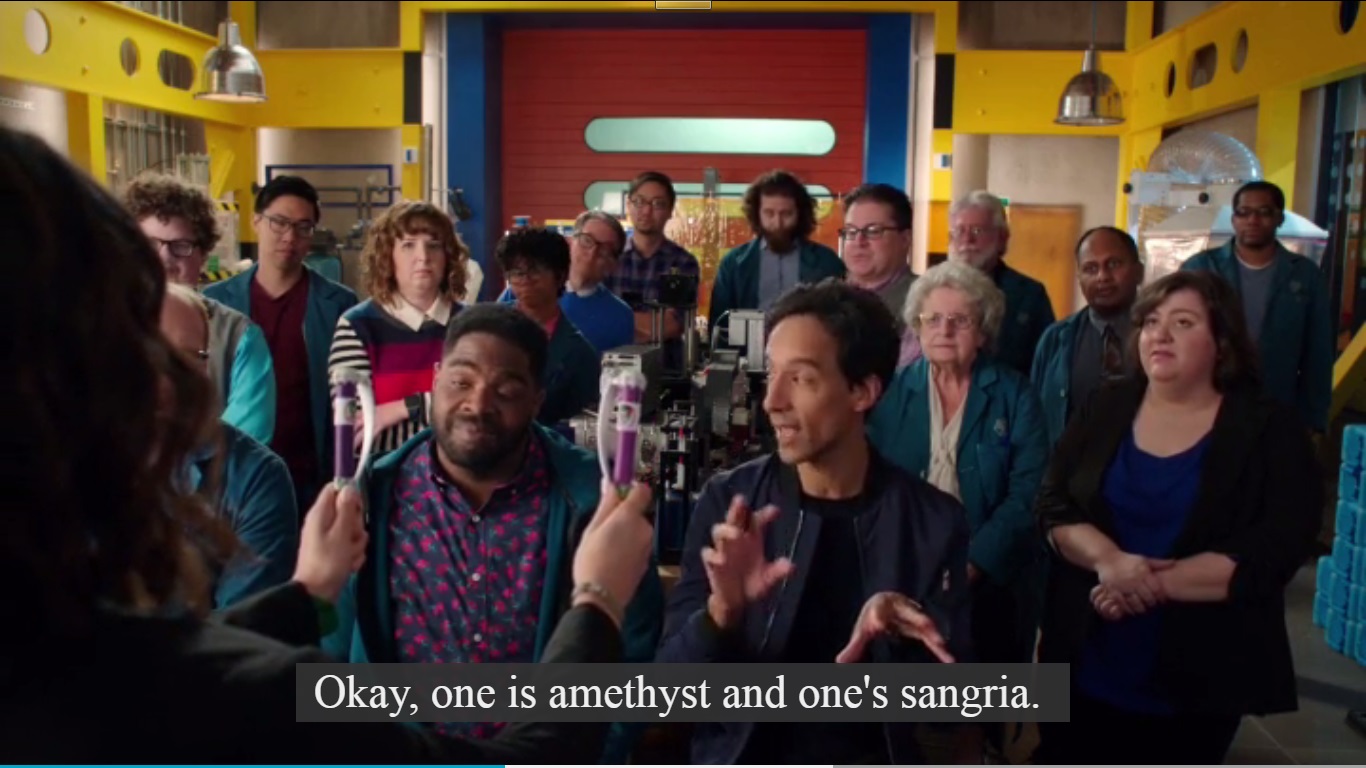 แปล: โอเค อันหนึ่งคือสีอเมธีส ส่วนอีกอันคือสีแซงกรีอา