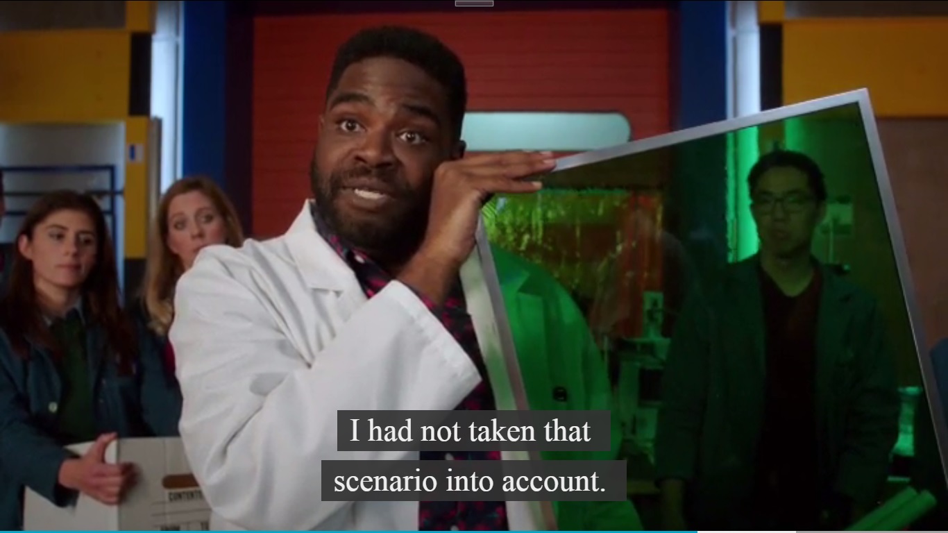 Scenario (n.): เหตุการณ์ หรือสถานการณ์ที่อาจเกิดขึ้น (หลายคนอาจเคยได้ยินคำว่า worst-case scenario ซึ่งแปลว่า สถานการณ์ที่เลวร้ายที่สุดที่อาจเกิดขึ้น ซึ่งเป็นความหมายเดียวกันที่ใช้ในที่นี้ด้วยคำ ปกติเราคุ้นกับคำว่า บทภาพบนต์ ใช่มั้ยล้าา) /