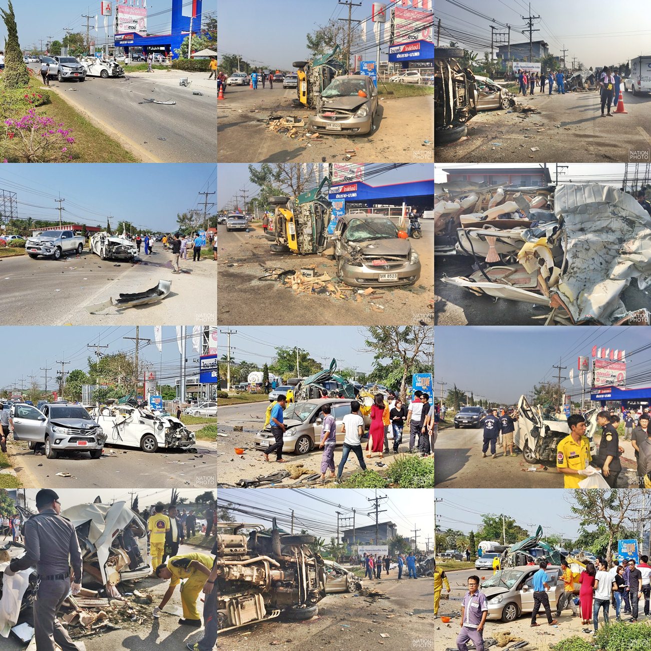 ที่เกิดเหตุ ซึ่งเป็นถนน 4 ช่องจราจร ขาเข้าเมือง พบรถยนต์ชนกันอย่างรุนแรงหลายคันขวางถนนอยู่ และกระเด็นไปอยู่ข้างทาง มีผู้เสียชีวิตในที่เกิดเหตุ 8 คน จึงระดมกำลังเข้าไปช่วยเหลือผู้บาดเจ็บแล้วรีบนำตัวส่งโรงพยาบาลเชียงรายประชานุเคราะห์อย่างเร่งด่วน โดยอุบัติเหตุดังกล่าวทำให้การจราจรติดขัดอย่างหนัก โดยเจ้าหน้าที่ต้องกันการจราจรไม่ให้รถขาเข้าเมืองผ่านเป็นเวลานานประมาณ 1 ชั่วโมง และจัดให้ใช้การสัญจรในช่องจราจรขาออกเมืองวิ่งสวนทางกันแทน