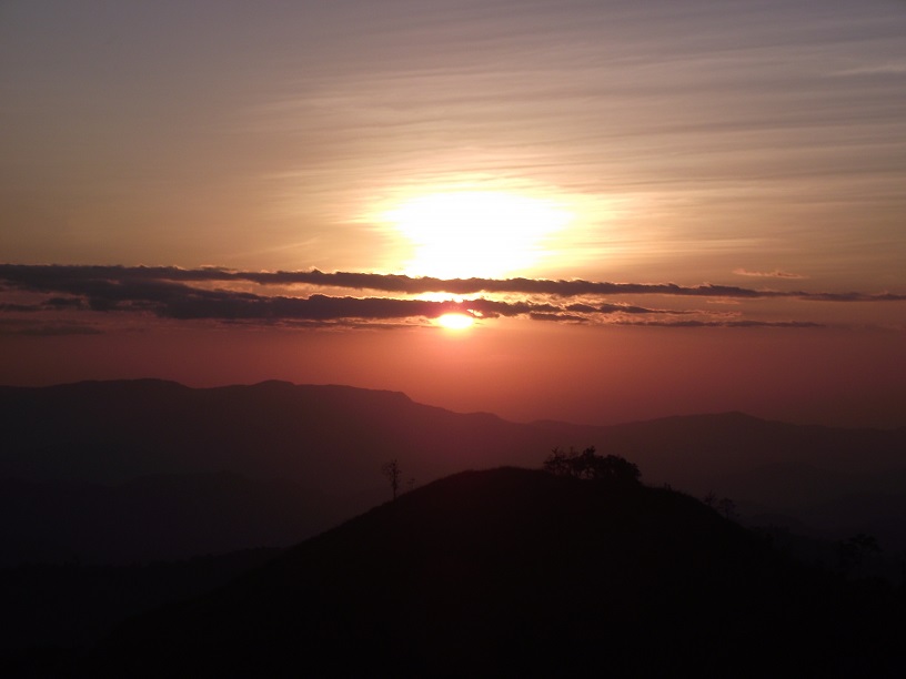 ถึงที่พักก็จัดเต็น จัดที่นอน สงสัยจะเพลีย เผลอหลับไปตอนไหนไม่รู้ รู้อีกที เจ้าหน้าที่ปลุกให้ไปดุพระอาทิตย์ตกที่บนเขาครับ