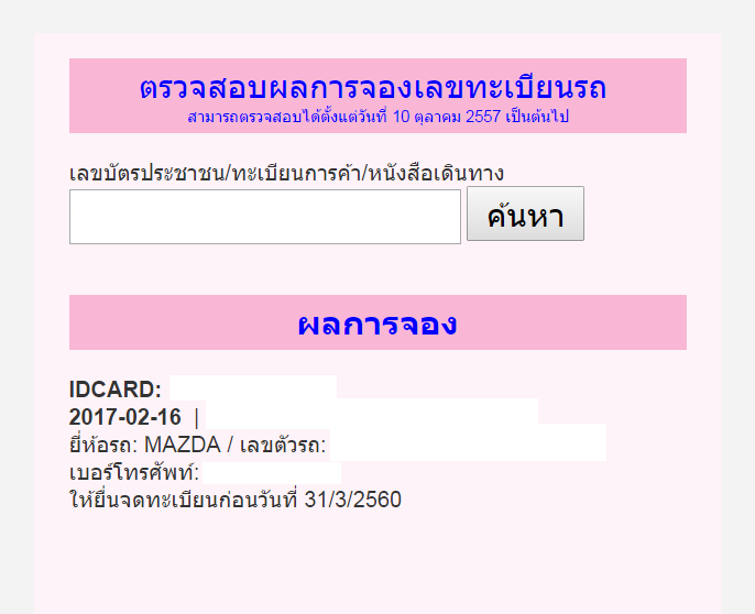 แล้วผมได้ศึกษาเรื่องการจองทะเบียน ก็ทำตามที่เวปบอกครับ แต่พอดีเลขที่ต้องการมันบอกไม่ได้ แล้วโหลดนานมาก